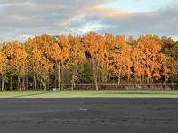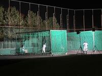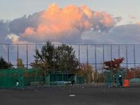 授業が終わって夕方のグラウンドに出ると、こんな感じです。木々もすっかり紅葉しています。約1時間であたりは真っ暗になります。気温も1桁台です。野球部が簡易照明をつけて、狭いスペースで工夫して練習していました。