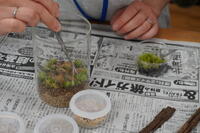今年度は「native Forest」の鈴木孝汰さんを講師に迎え、コケテラリウム制作を体験しました。11名の参加者は流木や石や苔等を使って、ガラス瓶の中に独自の世界を表現し楽しみました。