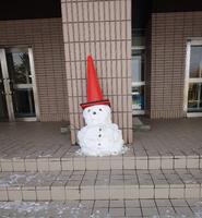 11月19日(水) 後期中間考査第1日目の朝、生徒玄関前に愛らしい雪だるまが突如出現。降雪で道が歩きにくい中、登校した生徒たちを雪だるまくんがお出迎えしてくれました。