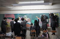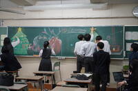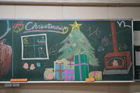 黒板アートでは、各クラス2~4名のチームが90分の制限時間の中で「クリスマス」をテーマに作品を制作しました。どのクラスも個性豊かで美しい作品を完成させ、教室が華やいだ雰囲気に包まれました。