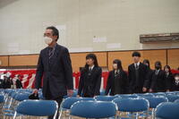 ホームルームの後には、学年主任や学年の先生方へ花束を贈る会も開かれ、多くの生徒が集まり感謝の拍手を送りました。