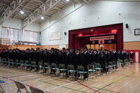 卒業式予行では、入退場などの動きを確認した後、保護者の皆さまに披露する合唱の練習にも取り組みました。よりよい歌声を届けたいという思いから、何度も歌い直しながら声を重ねる姿が見られました。生徒たちの表情には、本番に向けて気持ちが一つになっていく様子が感じられました。