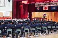 吹奏楽部による演奏、野球部と吹奏楽部、生徒会による校歌紹介も行われ、厳かな中にも温かな雰囲気のある入学式となりました。本年度40周年を迎える本校は新年度への期待に満ちた活気ある雰囲気に包まれました。