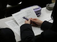 また、実際に合格した人の志望理由書を読み、重要だと思う箇所にアンダーラインを引きながら、生徒同士で意見を交換するグループワークも行いました。具体的な書き方や着目点を学ぶことで、進路への意識が一層高まった様子でした。