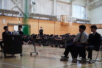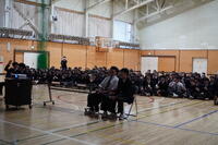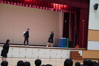 紙飛行機コンテスト 最後に行われた紙飛行機コンテストでは、滞空時間を競いました。各クラスが工夫を凝らした紙飛行機を披露し、飛行のたびに歓声と拍手が沸き起こりました。創意工夫あふれる取り組みは、生徒たちの個性を感じさせる素晴らしい時間となりました。