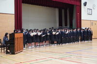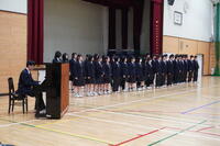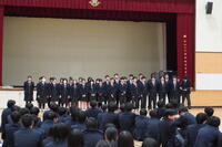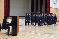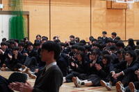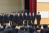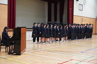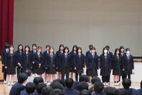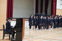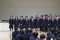 音楽選択者による合唱から幕を開け、澄んだ歌声が会場いっぱいに響き渡りました。続いて行われた各クラスによる校歌コンクールでは、2週間にわたり朝練習を重ねてきた成果を披露。どのクラスも胸を張り、力強い歌声で校歌を響かせ、会場は感動に包まれました。