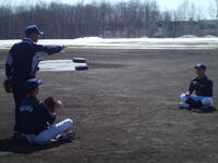 ここ数日は暖かい日が続いたおかげで、野球場の土の部分は完全に雪がなくなりました。半年ぶりに行ったフリー打撃では、冬期間のウエイトトレーニングやティー打撃や素振りの効果が、強い打球として現れています。選手は自分自身で成長を実感しています。今週末はオープン戦が組まれています。徐々に外での感覚を取り戻していきます。