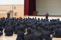 校長、学年主任、代表生徒が見学旅行を振り返ると共に、今後に向けての話もしました。