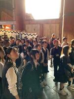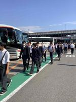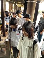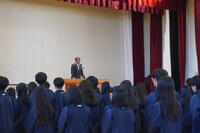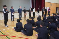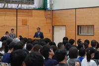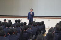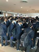 見学旅行に向けた結団式が体育館で行われました。 団長である校長先生をはじめ、学年主任の先生、引率の先生方が登壇し、生徒たちに向けて激励の言葉をいただきました。また、旅行中の心構えや安全面についての注意があり、全員が気を引き締める時間となりました。