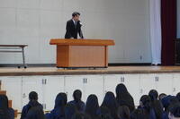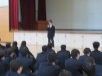 終業式では、校長と生徒指導部長による講話がありました。校長講話では、童話「ウサギとカメ」の話から、コツコツと一歩一歩だけでなく、隣ばかりを気にせずに、目標(ゴール)をしっかり定めて、その目標を達成するために、いろいろなことに挑戦して欲しいという話がありました。